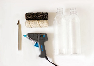 - 2 chai nước rỗng - Súng bắn keo - Thẻ quà tặng - Bút, kéo, dao - Dây thừng sợi nhỏ |